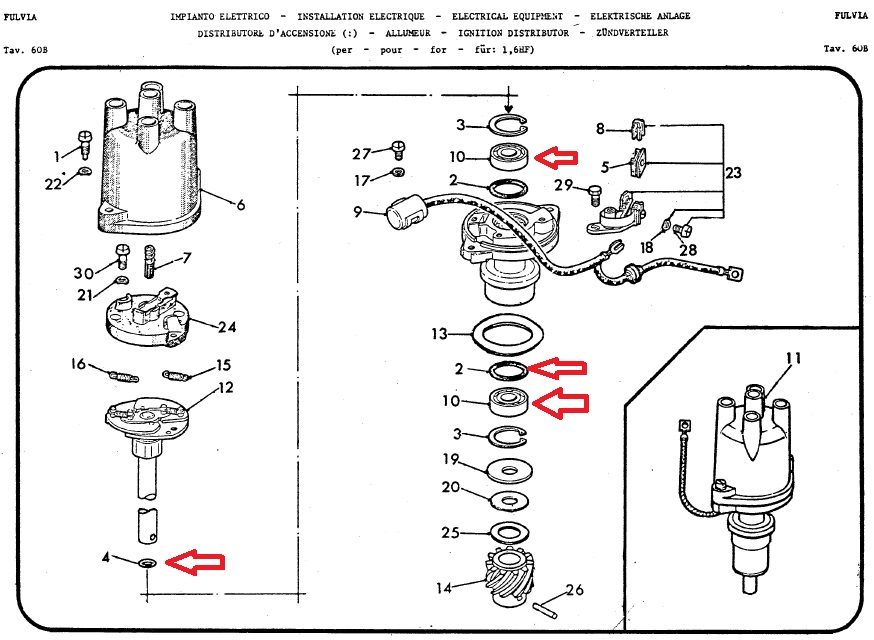 Lancia Fulvia S1,S2 1.6HF,1600HF Distributor Seals & Bearings Kit